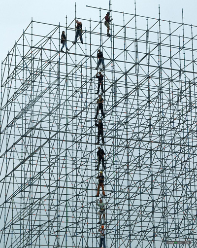 商丘市鑫盈建筑設備有限公司是一家集租賃、加工、銷售為一體的建筑設備有限公司。公司主營:租賃輪扣(快速架),為住宅樓、商務樓、大型地下停車場及橋梁提供建筑內架。公司經營理念,以誠信贏天下,為承建商提供優質服務。公司輪扣(快速架)規格齊全,其中立桿規格有:2.5米、1.8米、1.2米、0.9米、0.6米、0.5米、0.4米、0.3米、0.2米 橫桿規格:1.2米、0.9,米、0.6米   鋼管厚度均為國標(2.75mm),可調頂托500*30mm(頂絲)為實芯,堅固耐用,不易損傷